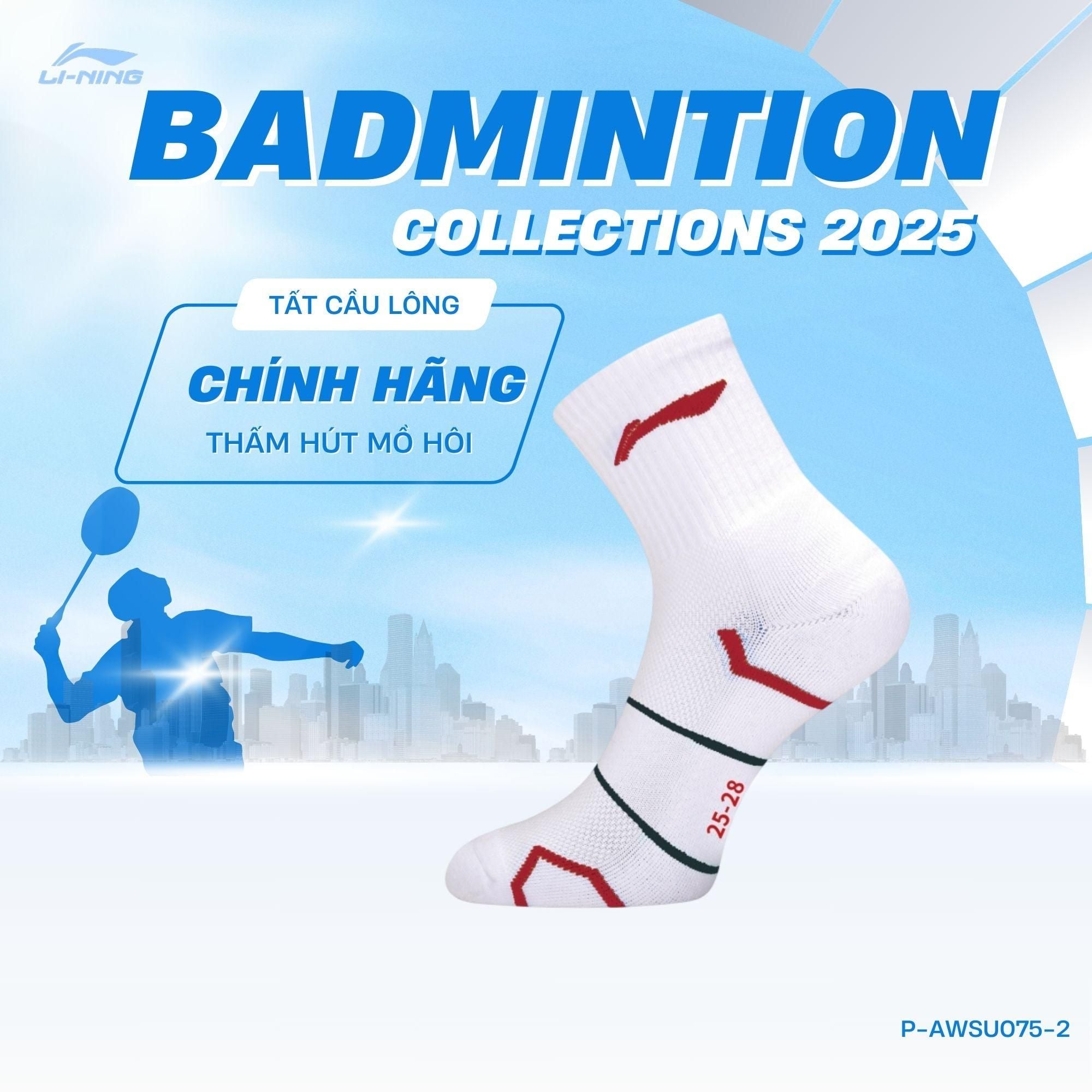 Tất cầu lông Unisex chính hãng Li-Ning P-AWSU075 chất liệu cotton thấm hút mồ hôi,thoáng khí dành cho cả nam và nữ chơi thể thao